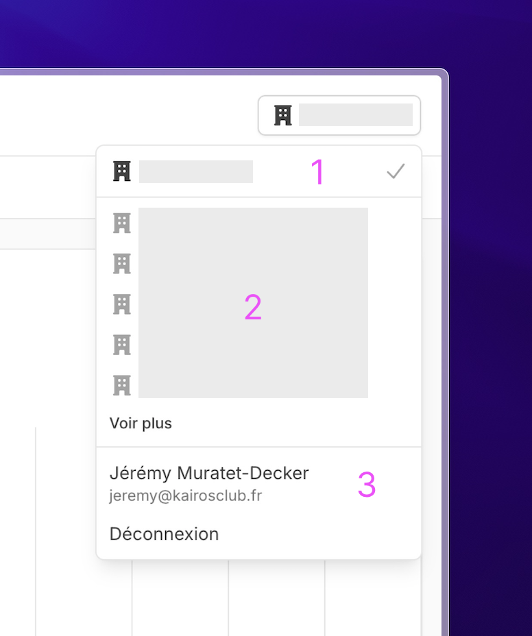 Si vous avez plusieurs comptes/labels, basculez d'une équipe à l'autre ou à ses paramètres.