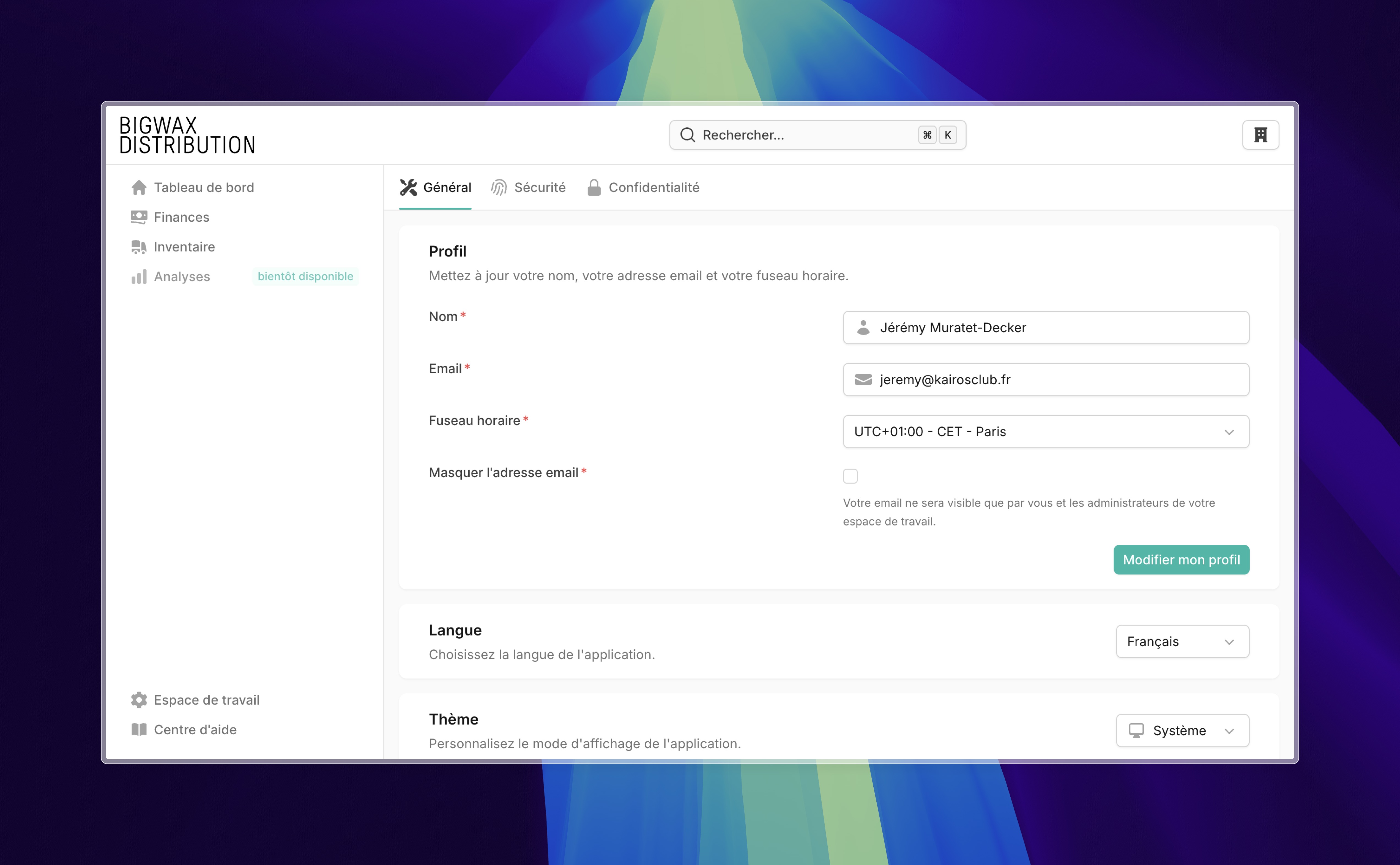 Détails de votre abonnement et de votre utilisation de Bigwax App.